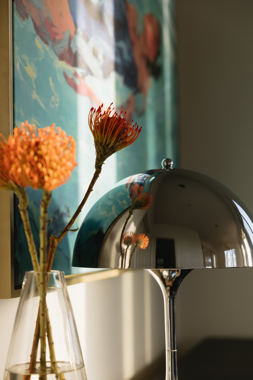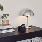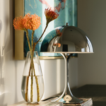 Introducing The Alleso, the crown jewel of our chrome collection. This striking lamp blends retro-inspired design with modern sophistication, making it the perfect statement piece for your home or studio. Its sleek, sculptural form exudes elegance, transforming any room into a stylish sanctuary.