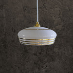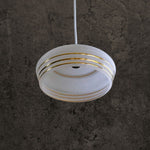 Original French vintage ceiling light (c. 1940), complete with a hand crafted translucent granite glass pendant with gold nets. Comes with a brand-new brass holder and socket, along with a grey colored electric cable for modern functionality. This lamp is in excellent vintage condition, no cracks or chips.