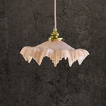 The elegant model is complemented by a delicately frilled border, showcasing the authentic design of its era. We've opted for a genuine brass system over plastic to maintain its luxurious appeal. This elegant light fixture comes equipped with a 1-meter long rose colored cable, ensuring it's ready to enhance your space with its timeless beauty.